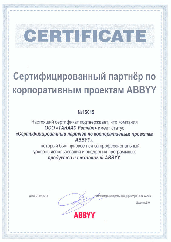 Сертификат ABBYY