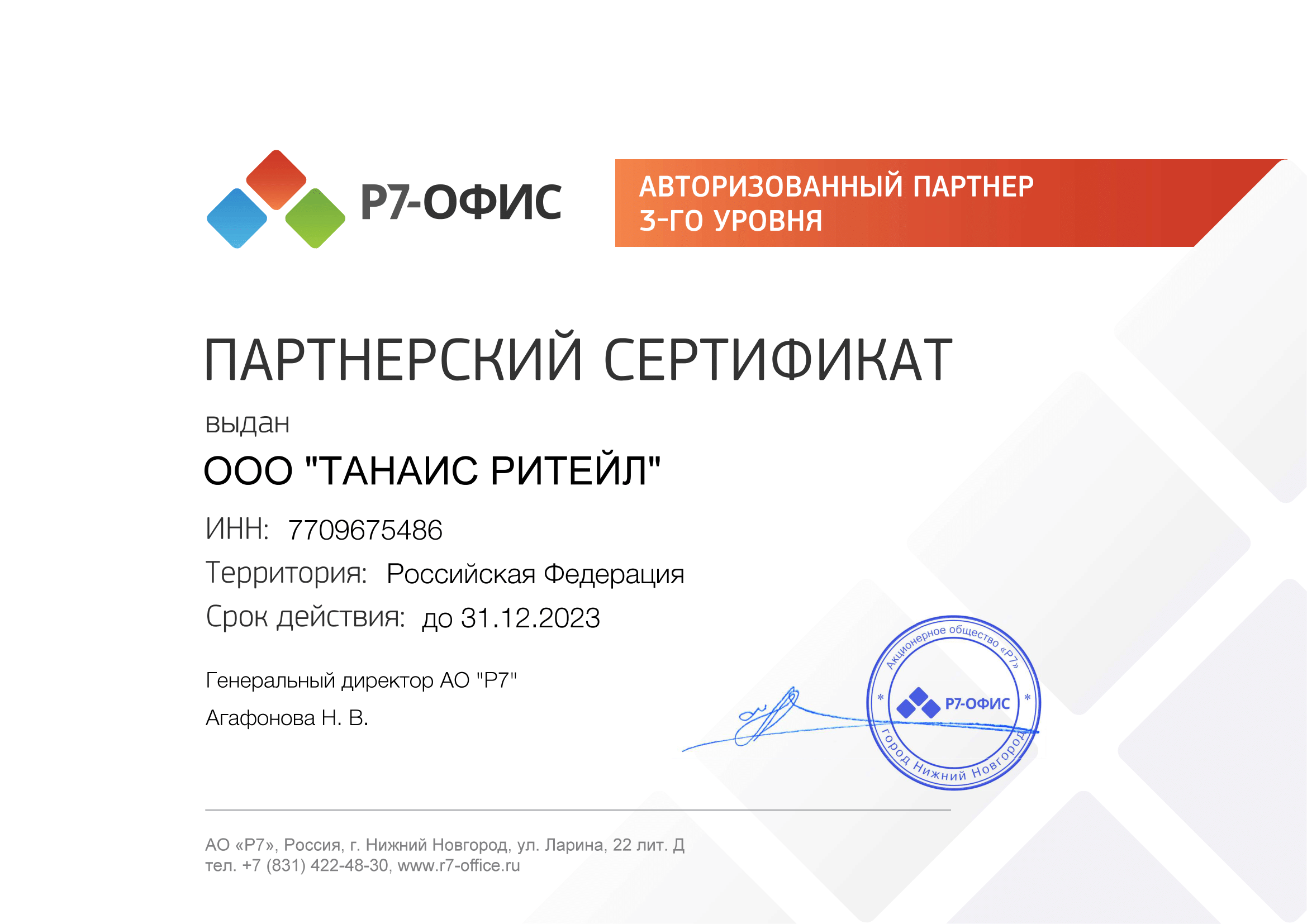 Авторизованный партнер Р7-Офис 3-ого уровня