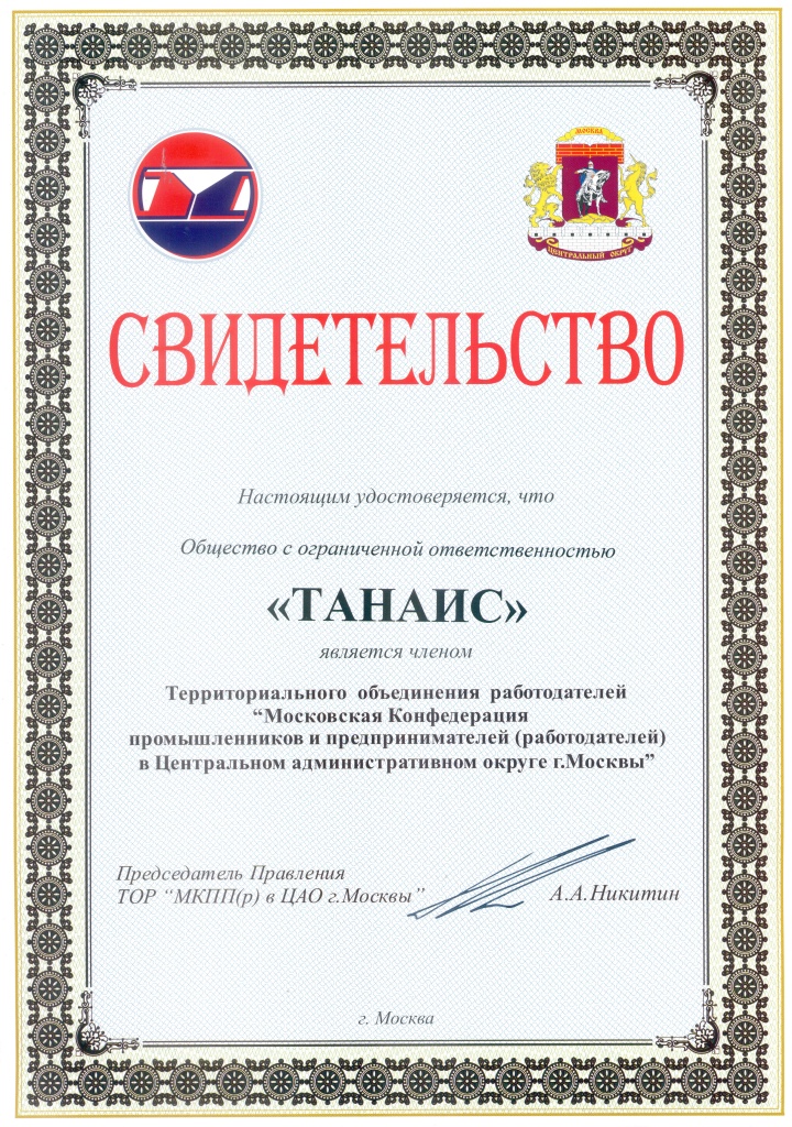 Свидетельство ТОР МКПП (р) в ЦАО г. Москвы